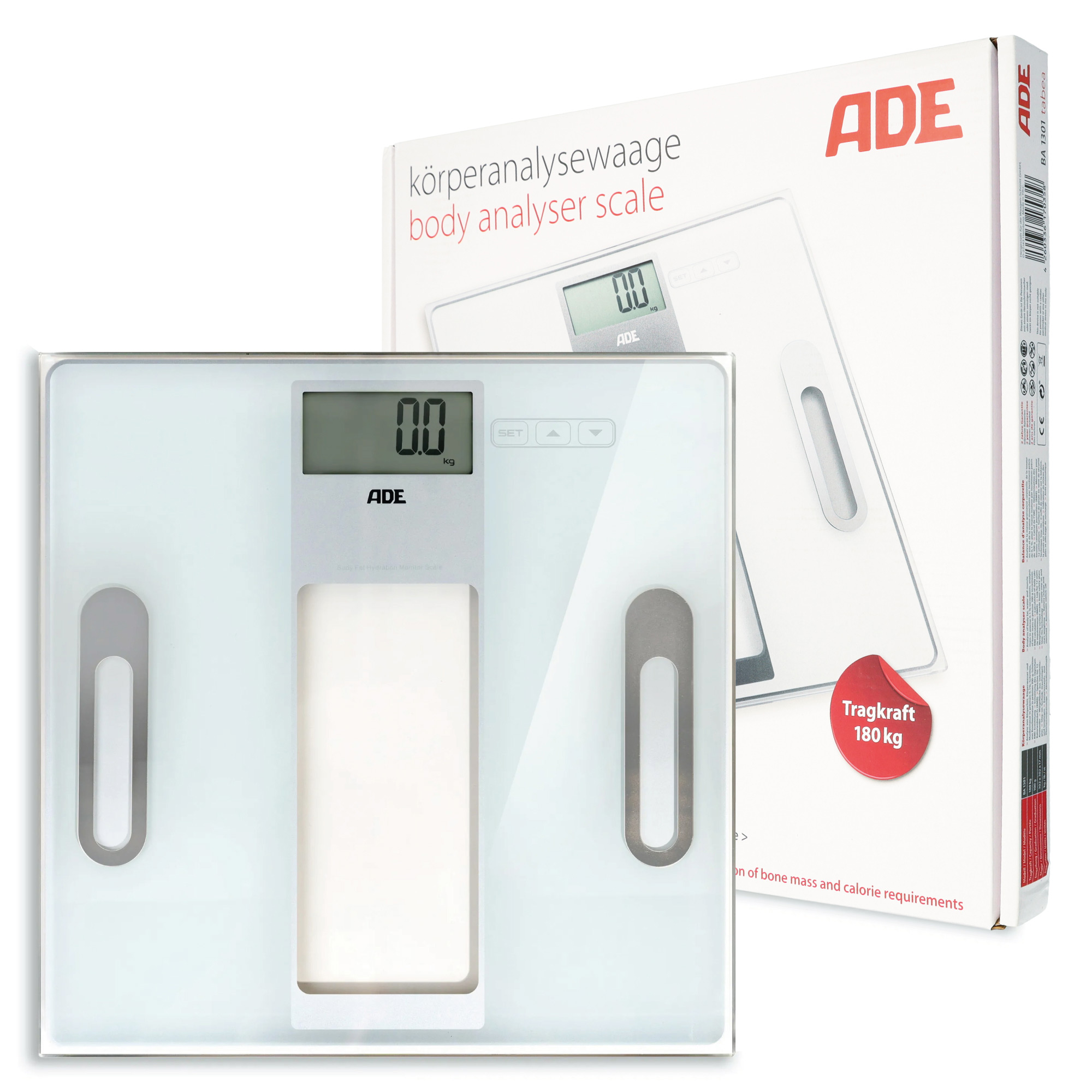 Dostępne wersje: Waga łazienkowa z analizą BMI Tabea srebrno biała, Waga łazienkowa z analizą BMI Tabea srebrno czarna.