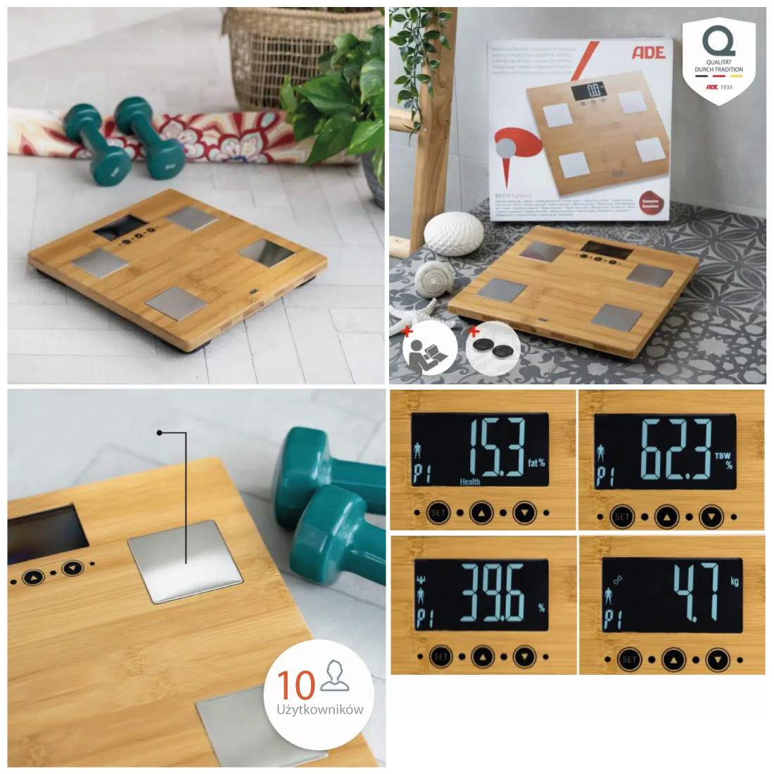 Waga Barbara analizuje zawartość wody, tkanki mięśniowej, kostnej i tłuszczowej w organizmie.