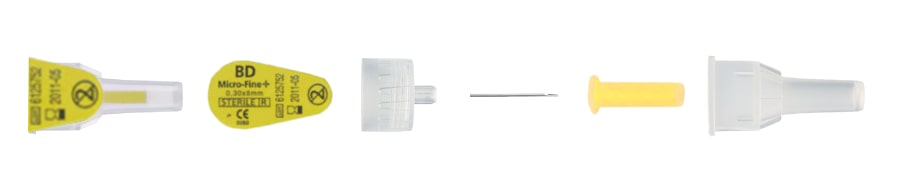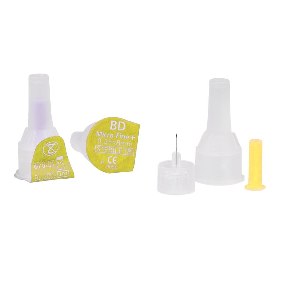 Igły do penów, do wstrzyknięć insuliny Igła do pena insulinowego BD Micro-fine Plus 0,30mm (30G) x 8mm Igły do penów BD Micro-Fine Plus są przeznaczone do jednorazowego użytku. Igły BD Micro-Fine są dostepne w dwóch rozmiarach 5mm i 8 mm pozwalających na dobranie długości tak, aby osiągnąć prawidłową głębokość wkłucia. Igły BD są kompatybile ze wszystkimi wstrzykiwaczami insuliny. Igła do pena insulinowego – wstrzykiwanie Insulina powinna być wstrzykiwana do tkanki tłuszczowej, a nie do tkanki mięśniowej. Szybkość absorpcji zależy od rodzaju tkanki, do której insulina jest podawana: tłuszcz, mięsień, żyła itd. Nie ma żadnych różnic fizycznych między komórkami tłuszczowymi w górnej i głębszej warstwie tkanki podskórnej. W celu niedopuszczenia do tworzenia się lipohipertrofii zaleca się, aby pacjenci używając igły do pena korzystali z różnych miejsc wstrzykiwania i powiększali każdy z obszarów wstrzykiwania, aby nie dopuścić do powtarzającego się urazu tego samego miejsca wstrzyknięcia. Nawet u osób otyłych warstwa podskórnej tkanki tłuszczowej może być w niektórych obszarach cienka (np. udo lub okolica mięśnia skośnego brzucha). Może to powodować wykonanie wstrzyknięć domięśniowych, których ryzyko może zostać zmniejszone dzięki użyciu igieł do wstrzykiwaczy BD Micro-Fine™ Plus 5mm. Aby jak najbardziej zbliżyć się do stanu fizjologicznego, lekarz może zalecić przyjmowanie więcej niż jednego rodzaju insuliny. Każdy rodzaj insuliny wchłania się do krwiobiegu w innym tempie i zaczyna działać w różnym czasie, co także może mieć wpływ na wybór miejsca wstrzykiwania. Igły do penów są kompatybilne ze wszystkimi rodzajami wstrzykiwaczy insuliny. Kompatybilność jest potwierdzona certyfikatem technicznym Becton Dickinson. Dzięki temu zapewniona jest szczelność połączenia igły z penem i pewność podaży całej dawki insuliny.
