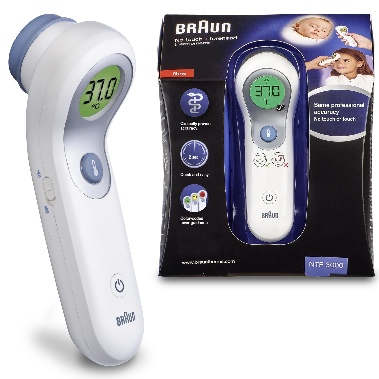 Ponadto w trybie bezdotykowym czujnik zbliżeniowy wskazuje prawidłową pozycję termometru, by wynik pomiaru był jak najdokładniejszy. Położenie termometru i jego odległość od czoła są bardzo ważne w przypadku odczytu temperatury metodami nieinwazyjnymi. Dba o to opracowany przez Braun system wskazujący poprawne ustawienie termometru. Duży wyświetlacz ze zmiennym kolorem podświetlenia dodatkowo ułatwia interpretację wyniku pomiaru.