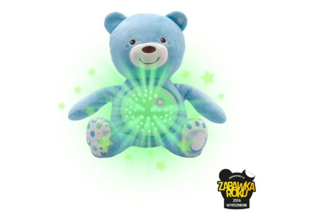 CHICCO 0M+ Miś z projektorem i muzyką, pluszowy, niebieski