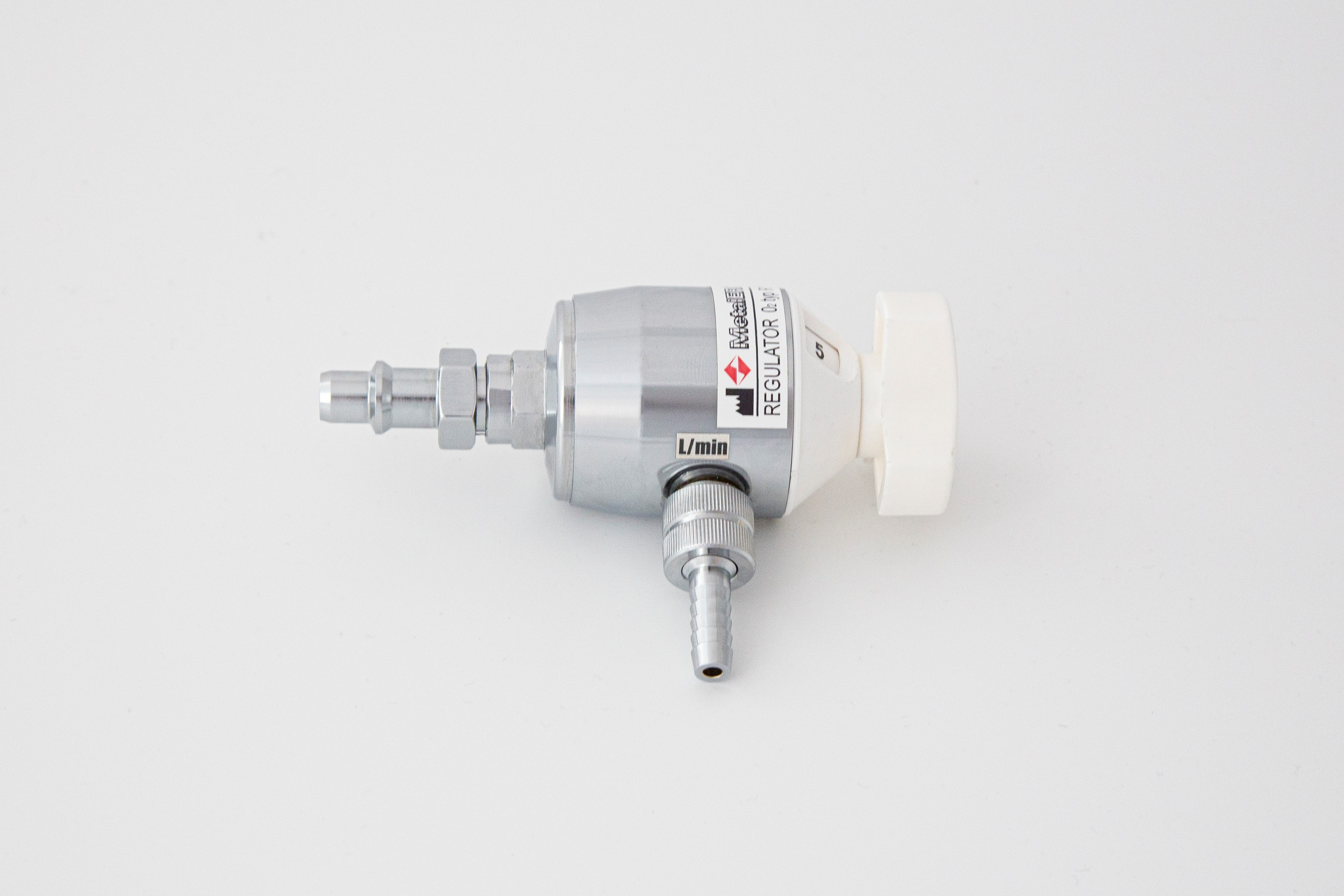 DOZOWNIK / REGULATOR TYPU R100 z przykęconym króćcem służy do tlenoterapii bez nawilżacza.