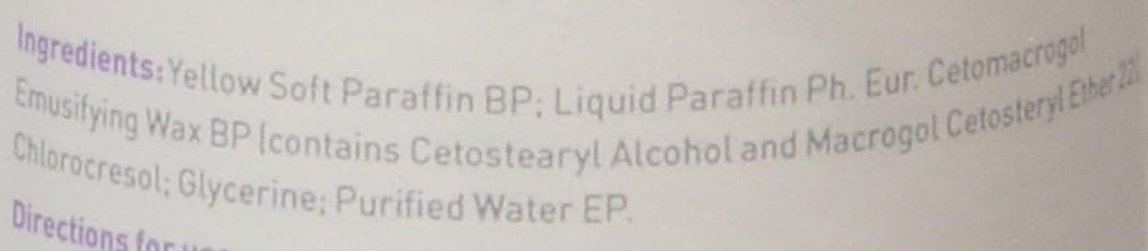 Parafina żółta miękka, parafina ciekła,cetomakrogol wosk emulgujący BP, chlorokrezol, woda dejonizowana, gliceryna