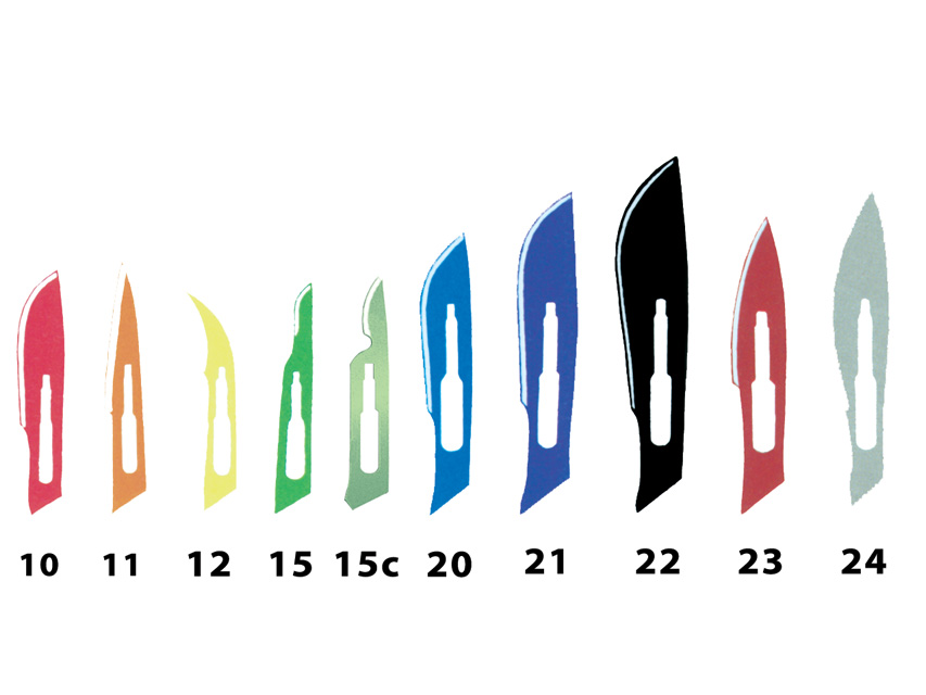 Ostrze chirurgiczne węglowe z końcówką bezpieczeństwa.Każde ostrze jest oznaczone i indywidualnie pakowane w folię aluminiową. Wielkość ostrza jest wyraźnie oznaczone na odwrocie folii oraz poprzez kolor naklejki na pudełkach zbiorczych.Ostrza chronione papierem VCI.W opakowniu 100 szt.