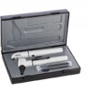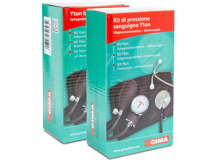 YTON KIT – stetoskop i ciśnieniomierz zegarowy Ekonomiczne sfigmomanometry z nylonowym mankietem zapinanym na rzep. Niezawodny manometr z klipsem do mocowania na mankiecie. Skala 0-300 mmHg. Uwolnienie powietrza przy zamkniętym kurku maks. 4 mmHg/minutę. Możliwość ręcznego ustawienia deflacji do 2/3 mmHg/sek. Od 260 mmHg do 15 mmHg maksymalny czas opróżniania 10 sek. Skala wyskalowana co 2 mmHg. Pływające zero (wskaźnik nie ma punktu zatrzymania, ale porusza się swobodnie), mankiet z nylonowym rzepem, gruszka lateksowa z chromowanym zaworem. Chromowany kurek powietrzny z regulacją wypuszczania powietrza za pomocą zaworu śrubowego. Dostarczany z miękkim etui z imitacji skóry z zamkiem błyskawicznym w kartonowym pudełku.