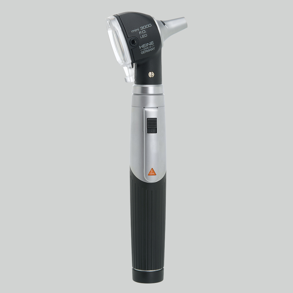 Otoskop z bezobsługowym oświetleniem diodowym LED. Zoptymalizowana termicznie dioda LED zapewnia stały poziom światła przez cały okres użytkowania. HEINE mini: z polikarbonową obudową, rękojeść z inteligentnym wyłącznikiem. LED w jakości HQ – Temperatura koloru 4 000 K, wskaźnik odwzorowania koloru (CRI) > 95 na skali do 100, specjalny wskaźnik dla koloru czerwonego: R9 > 90. 1 Bateria do 10 godzin – wskaźnik wydajności baterii: instrument jest włączany z maksymalną intensywnością oświetlenia, a następnie natężenie oświetlenia jest regulowane do poziomu, który odpowiada aktualnemu stanowi baterii, dzięki czemu wiadomo, kiedy baterie trzeba będzie wymienić. Funkcja przyciemniania zmniejsza intensywność oświetlenia wraz z poziomem zużywania się baterii, informując o konieczności ich wymiany. Czas pracy do 10 godzin. Dystalne oświetlenie światłowodow – homogeniczne, bezrefleksyjne oświetlenie przewodu słuchowego oraz błony bębenkowej. Okienko wzierne z 3x powiększeniem Okienko o konstrukcji minimalizującej refleksy świetlne i zapewniającej ostry obraz. Odchylane okienko wzierne wbudowane w instrument. Możliwość podłączenia gruszki insuflacyjnej Umożliwia przeprowadzenie testu pneumatycznego ruchomości błony bębenkowej. Metalowy łącznik zamawiany jest oddzielnie Klips z wbudowanym wyłącznikiem. Wyłącza się automatycznie podczas wsuwania do kieszeni Wymienne baterie – baterie typu AA lub opcjonalnie bateria akumulatorowa z ładowarką mini NT* Dwuczęściowy instrument Instrument składa się z rękojeści i główki. Dostępne wersje otoskopu światłowodowego mini 3000 LED 2,5 V D-008.70.120 Otoskop światłowodowy mini 3000 LED z rękojeścią bateryjną mini 3000 z zestawem wzierników wielokrotnego użytku (4 szt.), po 5 wzierników AllSpec 1x użytku Ø 2,5 i 4 mm, z bateriami D-008.70.110 Otoskop światłowodowy mini 3000 LED z rękojeścią bateryjną mini 3000, po 5 wzierników AllSpec 1x użytku Ø 2,5 i 4 mm, z bateriami D-008.70.106 Otoskop światłowodowy mini 3000 LED, bez rękojeści oraz dodatkowych akcesoriów