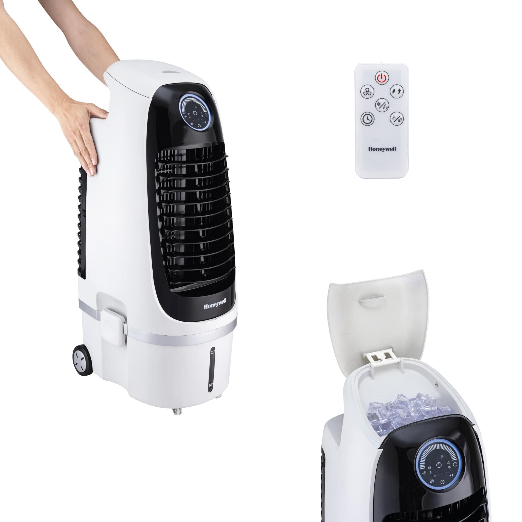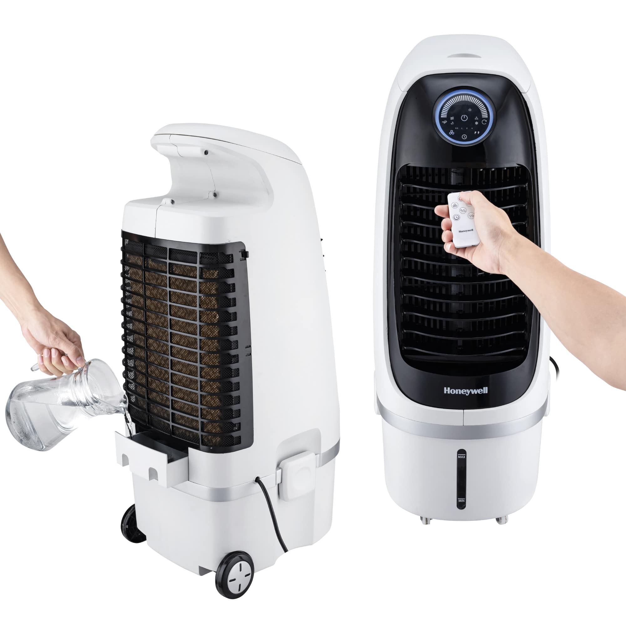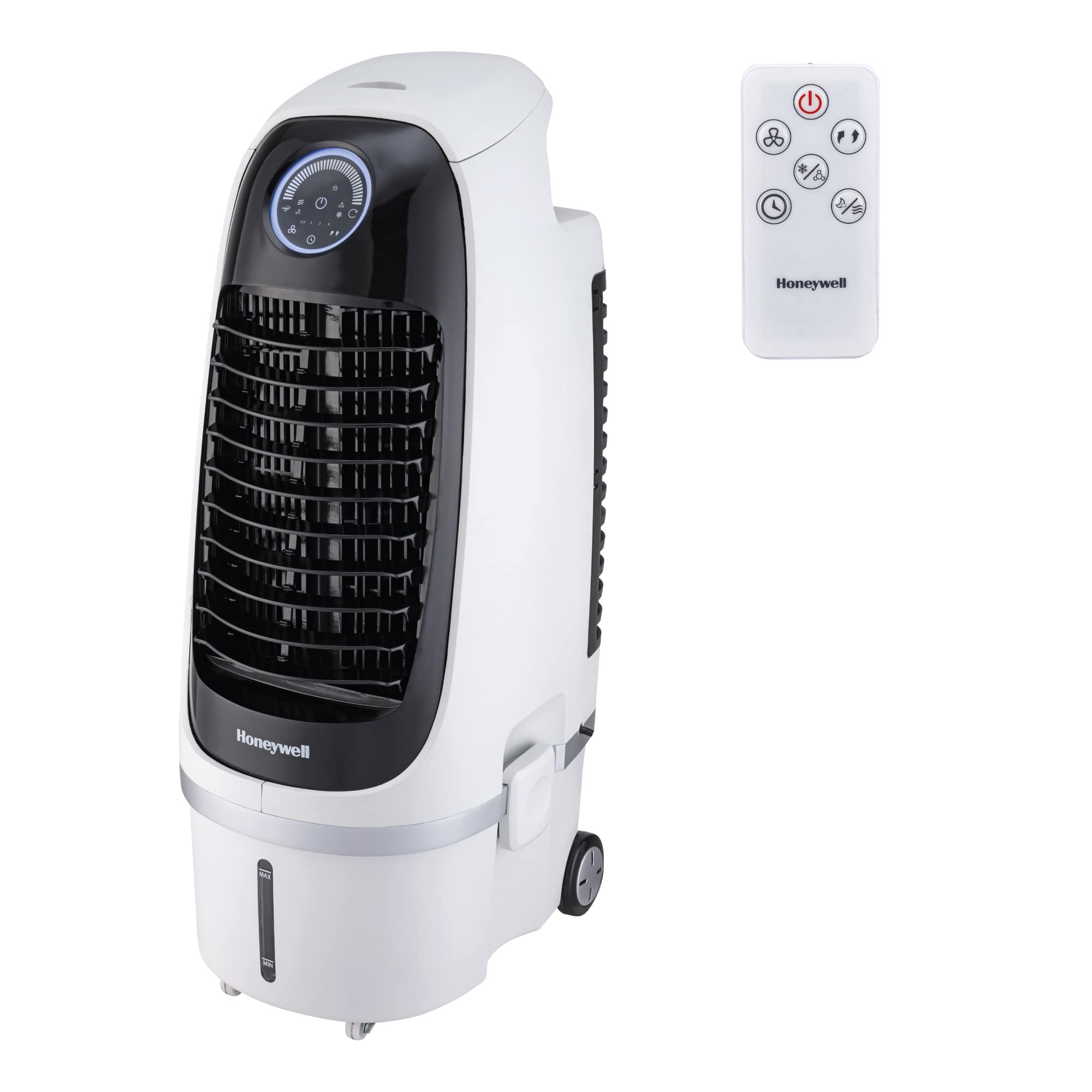 Przedstawiamy nowoczesny klimator ewaporacyjny Honeywell CS10PEI, który jest kompaktowym, lekkim modelem, posiadającym owalny korpus i atrakcyjny, podświetlony panel sterujący.