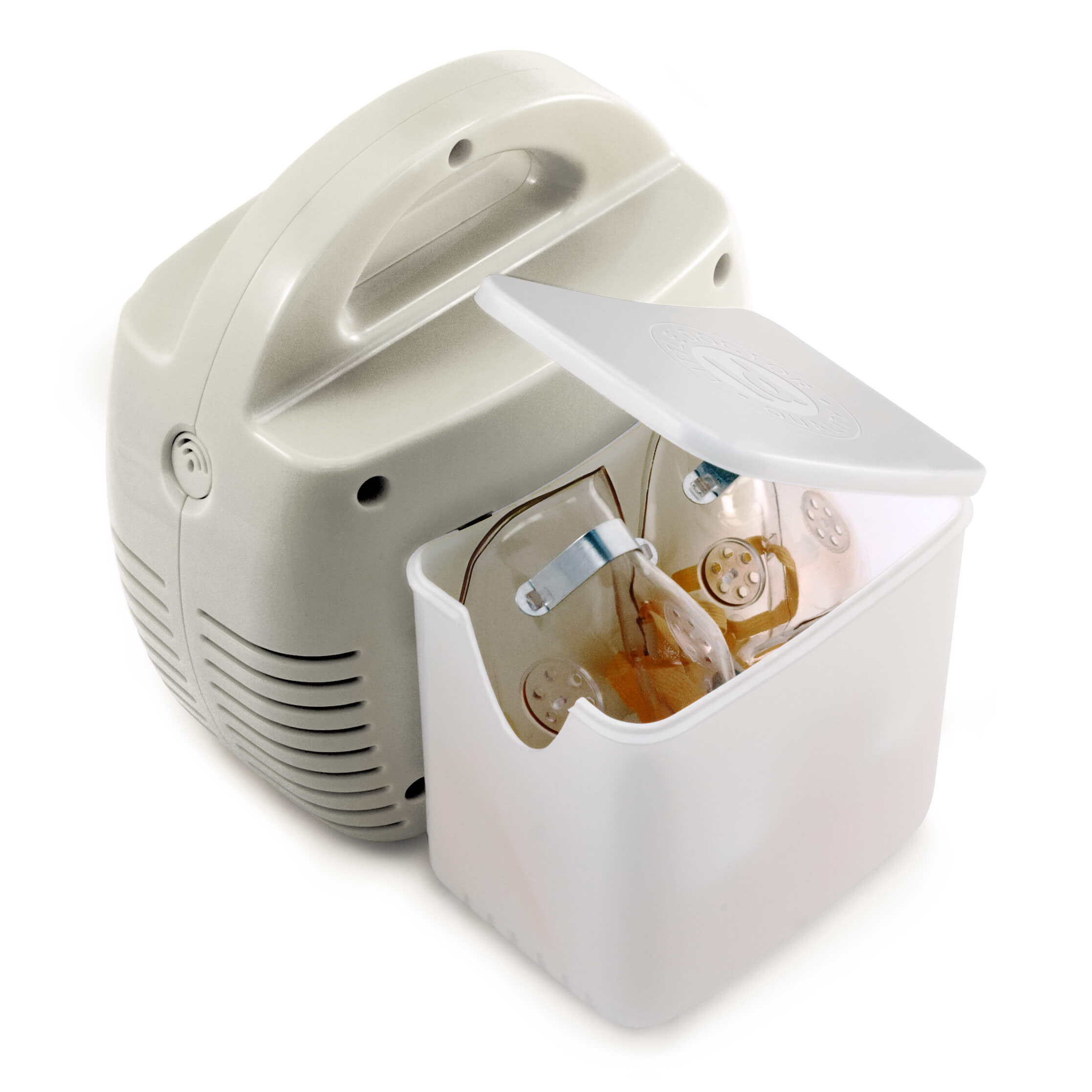 Inhalator kompresorowy dla dzieci i dorosłych, pozwalający na wykorzystywanie szerokiego spektrum preparatów do inhalacji. Klasyczna wersja kolorystyczna. Funkcje:• Pozwala na użycie szerokiego spektrum leków przeznaczonych do inhalacji.• Maksymalnie efektywne wykorzystywanie preparatów leczniczych, dzięki niskiej końcowej objętości roztworu inhalacyjnego.• Standardowy komplet zawiera: maskę dla dorosłych, maskę dla dzieci, 2 ustniki, 2 nasadki do inhalacji przez nos, przewód powietrzny o długości 2m, 5 wymiennych filtrów powietrza.• 3 rozpylacze w zestawie.• Niski poziom hałasu.