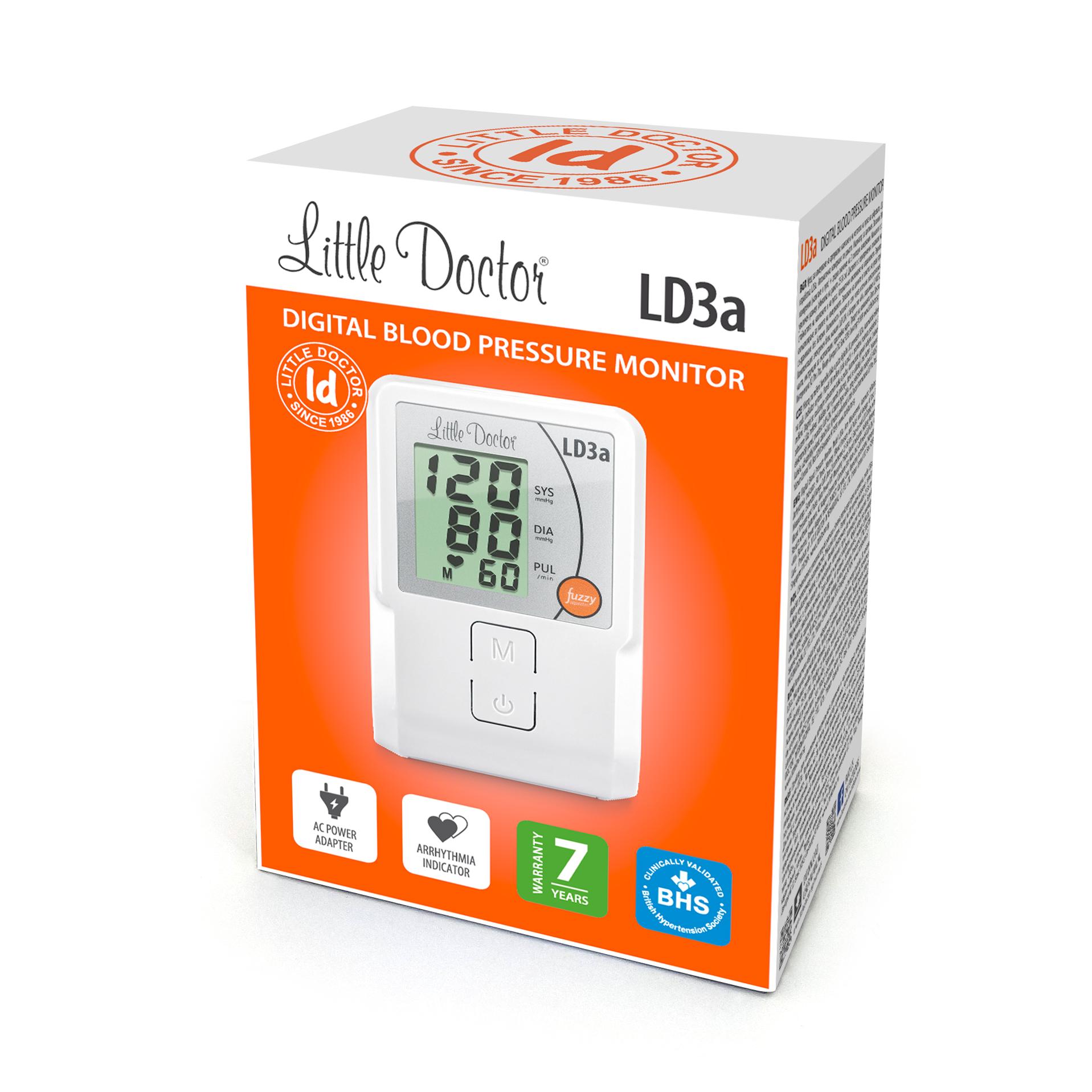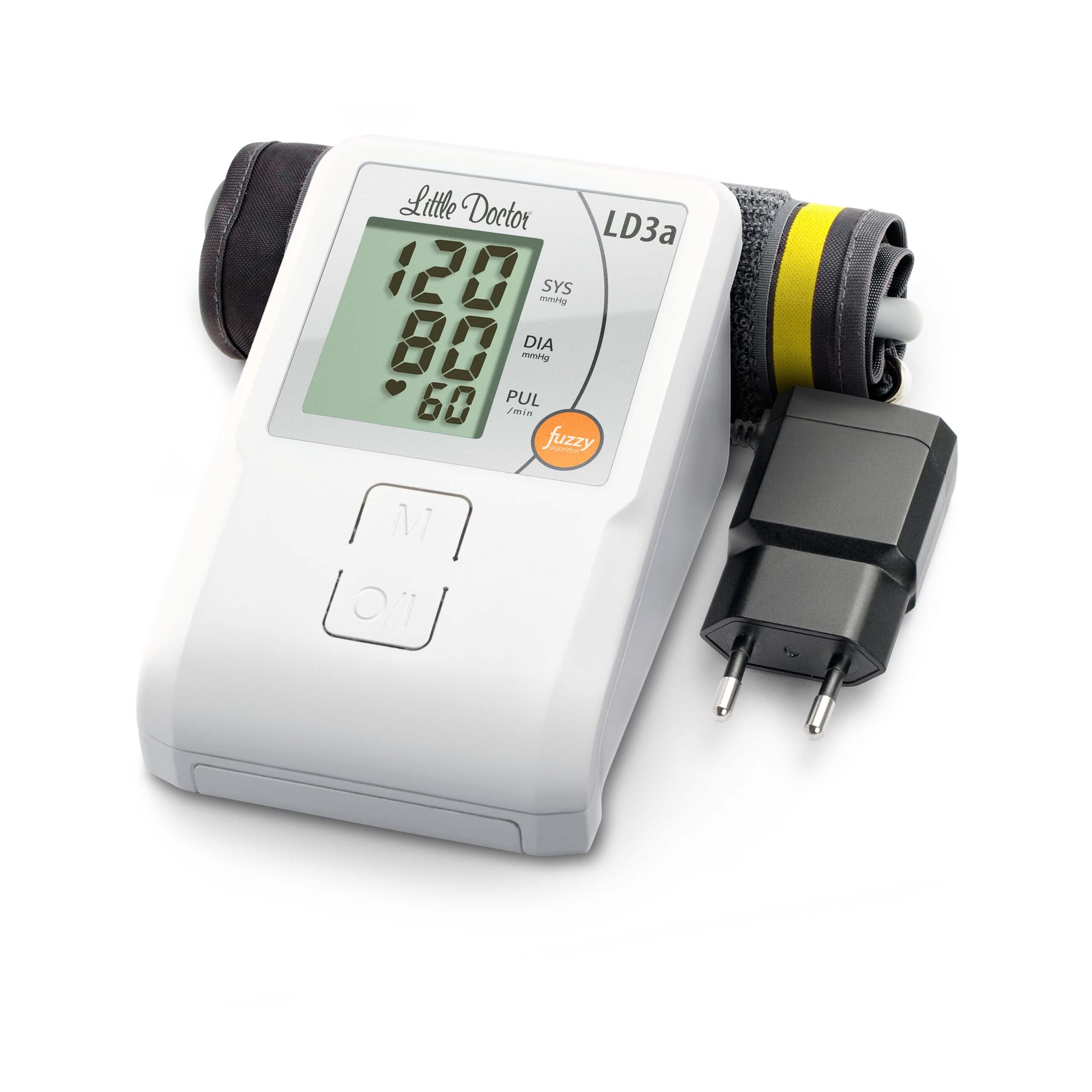 Automatyczny ciśnieniomierz elektroniczny LD – model ekonomiczny. Algorytm Fuzzy uwzględnia indywidualne cechybicia serca. Wskaźnik arytmii informuje o wykryciu nieregularnego pulsu. Niezależna od źródła zasilania pamięć pozwala na zapamiętanie 90 wyników pomiarów i wyliczenie średniej wartości trzech ostatnich. Wersja z zasilaczem. Mankiet dostosowany jest do ramienia o obwodzie 25-36 cm. Dźwiękowa sygnalizacja etapów pomiaru. Ciśnieniomierz posiada Walidację Kliniczną (BIHS).