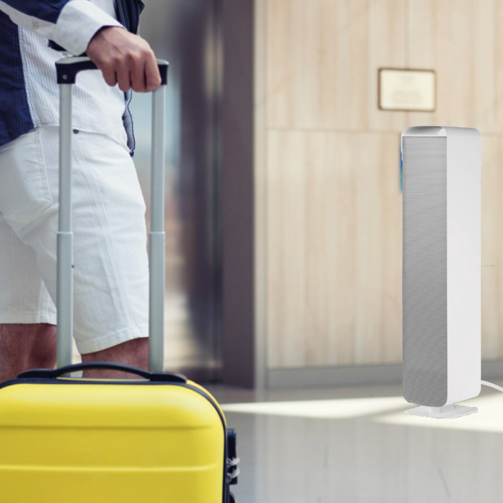 Dezynfekcja w hotelach, salonach fryzjerskich i kosmetycznych, restauracjach, przedszkolach i szkołach Przepływowe lampy UV-C STERILON FLOW 72W wykorzystując światło ultrafioletowe (UV-C), są jednym z najskuteczniejszych urządzeń zdolnym usunąć z otoczenia wirusy, bakterie, grzyby lub zniszczyć DNA czy RNA wszelkich mikroorganizmów, które zostaną poddane naświetleniu. Lampy polecane do wykorzystania w obiektach usługowych (salony fryzjerskie, kosmetyczne, manicure), placówkach służby zdrowia, hotelach, restauracjach, jednostkach administracji publicznej, placówkach edukacyjnych i opiekuńczych, a także do zastosowań prywatnych. We współpracy z przedsiębiorcami w dobie pandemii skonstruowaliśmy zestaw do dezynfekcji pomieszczeń działający w oparciu promieniowanie UV-C. Lampy do dezynfekcji i sterylizacji działają wszędzie tam gdzie potrzebujesz. Metoda uznana przez WHO i GIS jako jedna z form walki z koronawirusem. Technologia stosowana do walki z koronawirusem w Chinach i w Europie. Ergonomiczna konstrukcja lampy dostosowana do długoterminowej pracy. Brak konieczności angażowania dodatkowych zasobów osobowych. Funkcjonalności zapewniające bezpieczeństwo. Lampa antywirusowa UV-C STERILON FLOW posiada ATEST PZH Lampy wirusobójcze UV-C STERILON FLOW 72W to urządzenia dwufunkcyjne. Funkcja przepływowej dezynfekcji powietrza Dzięki wymuszonej cyrkulacji, powietrze przechodzi przez wnętrze lampy, gdzie zostaje naświetlone i zdezynfekowane, a następnie wyparte na zewnątrz. Osłonięte światło UV-C nie wydostaje się na zewnątrz lampy, dzięki czemu może ona być wykorzystywana w pomieszczeniach, gdzie trzeba bezpiecznie i skutecznie zdezynfekować powietrze w obecności ludzi. Lampy wirusobójcze UV-C STERILON FLOW 72W to urządzenia dwufunkcyjne. Funkcja bezpośredniej dezynfekcji powierzchni Po otwarciu przesłony źródła światła wystarczy skierować lampę bezpośrednio na powierzchnię przez określony czas, aby skutecznie ją zdezynfekować. Należy jednak pamiętać, że światło UV-C jest szkodliwe dla skóry i oczu.Wykorzystując lampę w tej formie nie można znajdować się w zasięgu strumienia światła, a przed jej użyciem wymagane jest zapoznanie się z instrukcją obsługi dołączoną do produktu. Zalety wirusobójczej lampy UV NEUTRALIZACJA 99,9% WIRUSÓW Funkcja przepływowej dezynfekcji powietrza Funkcja jednokierunkowej bezpośredniej dezynfekcji powierzchni Maksymalny metraż (kubatura) dezynfekowanego pomieszczenia przy dezynfekcji przepływowej: 75 m3 Powierzchnia naświetlania przy dezynfekcji bezpośredniej z odległości 1 m: 7 m2 Rodzaj światła: ultrafioletowe UV-C Długość Fali UV-C: 253,7 nm Klasa ochronności: I Kolor: obudowa biały mat, front srebrny ocynkowany Kolor frontu: srebrny ocynkowany Przepływ powietrza: 160 m3/h Filtr przeciwkurzowy Miejsce na filtr HEPA Żywotność źródła światła: 9000h Napięcie zasilające: 220-240V Stopień szczelności: IP20 Przewód zasilający: 3m Włącznik on-off Wymiary (A/B/C) [mm]: 160x160x724 Możliwość doposażenia w kółka prowadzące
