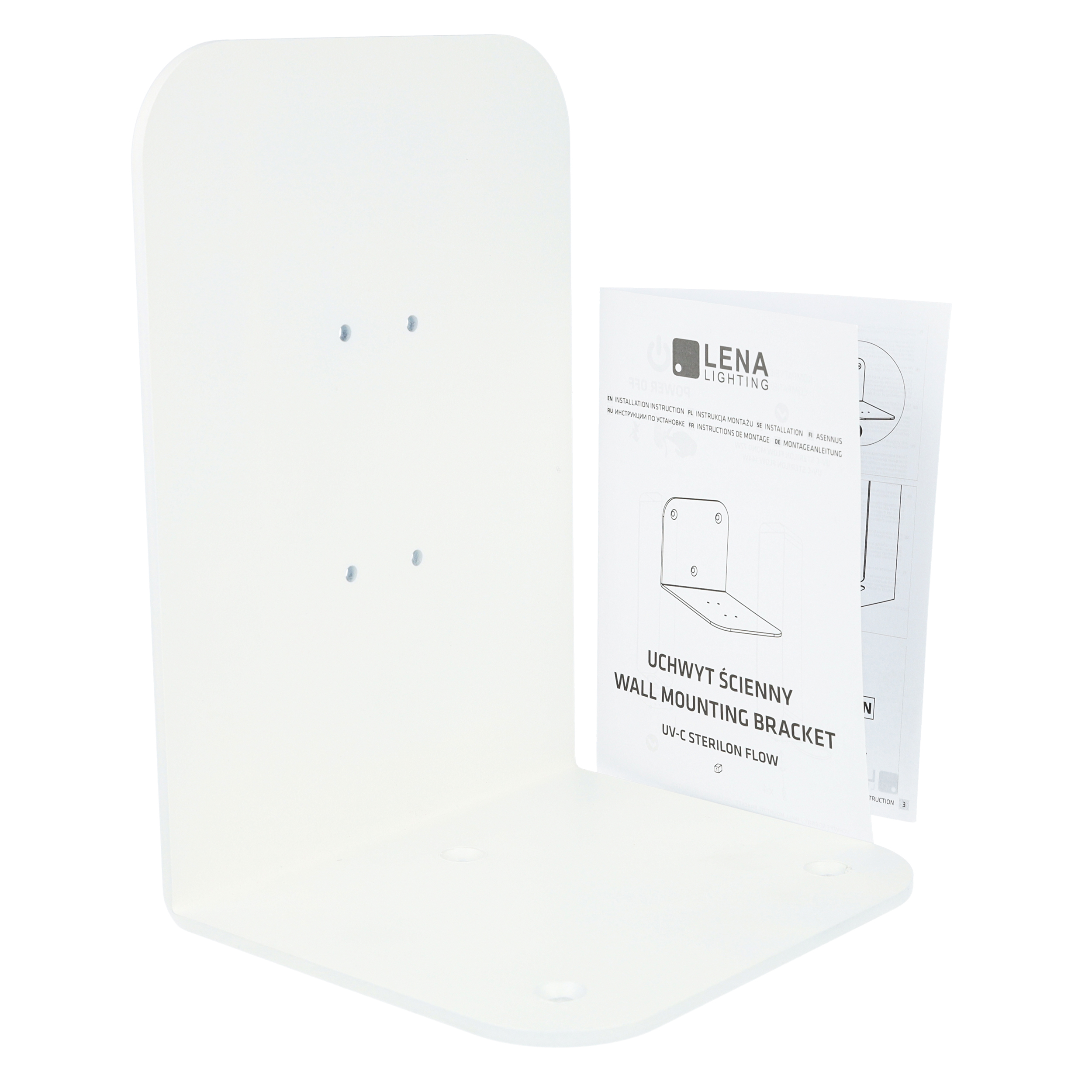 Uchwyt umożliwiający montaż naścienny lamp UV-C Sterilon Flow. Prosty montaż za pomocą dołączonych śrub mocujących.Wymiary: 225x140x160Waga: 1.75Kolor: biały matowy