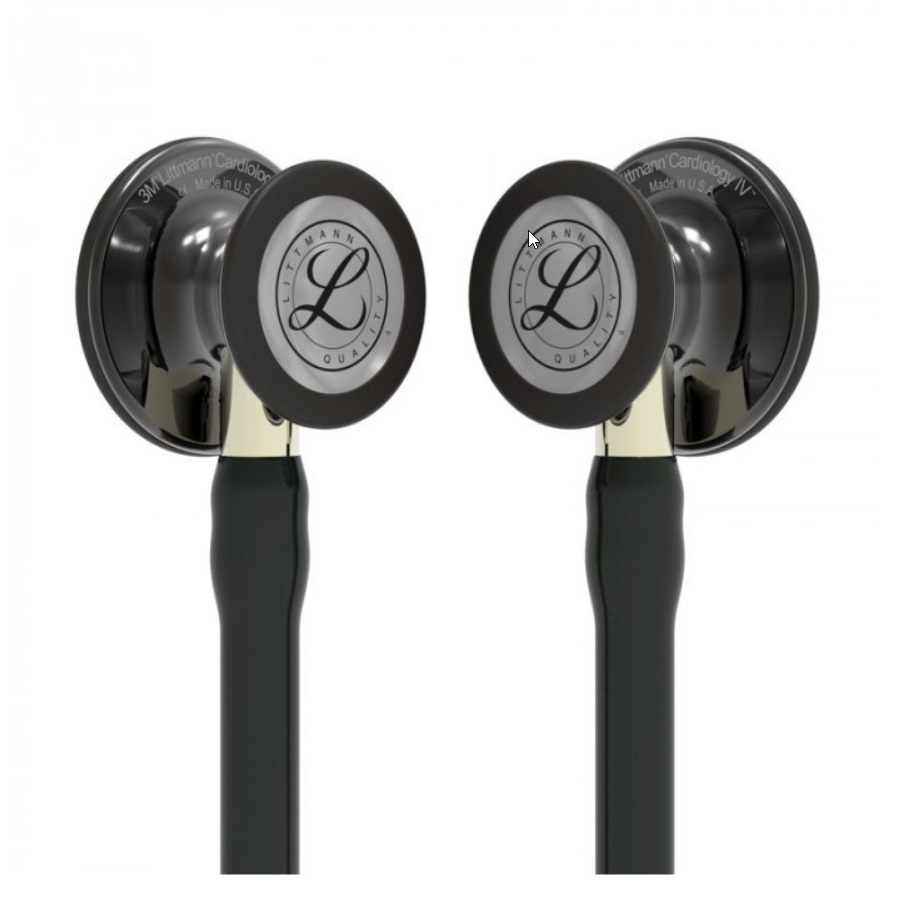 Prezentowany model to 3M™ Littmann® Cardiology IV™ z wykończeniem w kolorze czarnym. Przewód czarny. Trzonek w kolorze High polish smoke Model: 6204