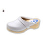 Na spodach drewnianych z profilem ortopedycznym, podeszwą przeciwpoślizgową i cholewką skórzaną.