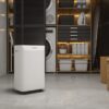 Osuszacz powietrza Aquaria 10 Bardzo kompaktowy osuszacz, który zapewnia osuszanie 10 l/24h. Kompaktowy osuszacz w duchu high-tech. Panel sterowania Aquaria, umożliwia precyzyjne ustawienie i precyzyjną kontrolę temperatury i wilgotności. A jakość powietrza? Ulepszone dzięki podwójnemu filtrowi przeciwpyłowemu i z węglem aktywnym. DO 10L/24H Wydajność osuszania PODWÓJNY FILTR POWIETRZA Filtr przeciwpyłowy i przeciwpyłkowy oraz filtr z węglem aktywnym CYFROWY PANEL STEROWANIA Dla precyzyjnych poleceń i czystego wyglądu Wydajność osuszania: 10 l / 24h Dla pomieszczeń do 45 m3 Pojemność zbiornika: 2l Poziom hałasu 40 dB Wskaźnik temperatury i wilgotności Timer 1-24h Półprzezroczysty wyjmowany zbiornik Alarm pełnego zbiornika Prędkość: niska/średnia/wysoka Funkcja osuszania Automatyczne odszranianie Kółka