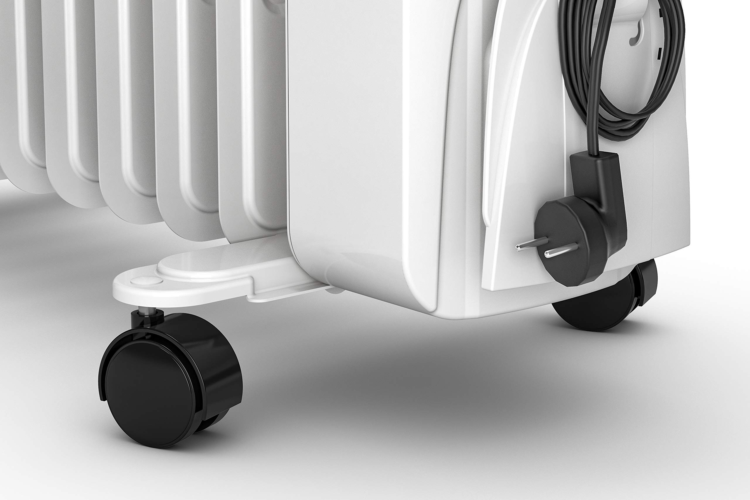 Specjalna konstrukcja metalowych elementów grzejnika oraz otwory po bokach umożliwiają równomierne rozprowadzenie ciepła . Grzejnik Caldorad został zaprojektowany tak, aby zapewnić ustawioną temperaturę przez długi czas . Praktyczne kółka nie rysują podłogi; górny uchwyt ułatwia przenoszenie urządzenia .