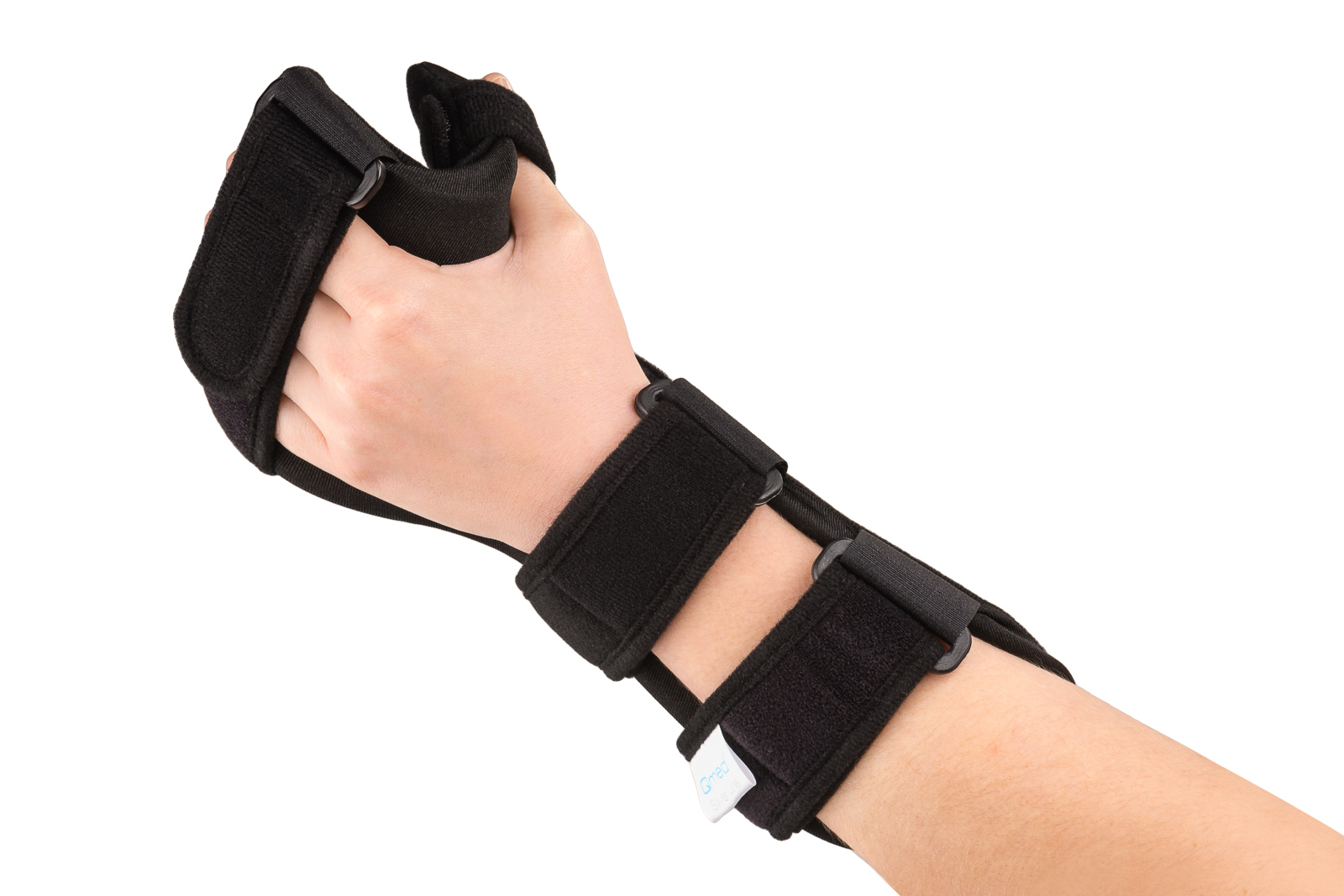 ZASTOSOWANIE: Szyna stosowana jest podczas schorzeń nadgarstka, ręki i palców, wymagających podparcia oraz stabilizacji zaopatrywanego obszaru w określonych ustawieniach korekcyjnych i/lub redukujących dolegliwości bólowych, stosowana jest również podczas zapaleń ścięgien, zespołów cieśni nadgarstka, reumatoidalnych zapaleń stawów, a także podczas profilaktyce przykurczów, uszkodzeń nerwów obwodowych i zabiegów chirurgicznych. CECHY PRODUKTU szyna, orteza nadgarstkowo-ręczno-palcowa z ujęciem kciuka, produkt mocowany jest za pomocą szerokich taśm z rzepem, wersja lewa i prawa. ROZMIARY: Rozmiar XS S M L szerokość ręki (cm) 6 – 7 7 – 8 8 – 9 9 – 10 Rozmiar ustala się na podstawie pomiaru szerokości ręki w centymetrach na wysokości stawów śródręczno-paliczkowych.