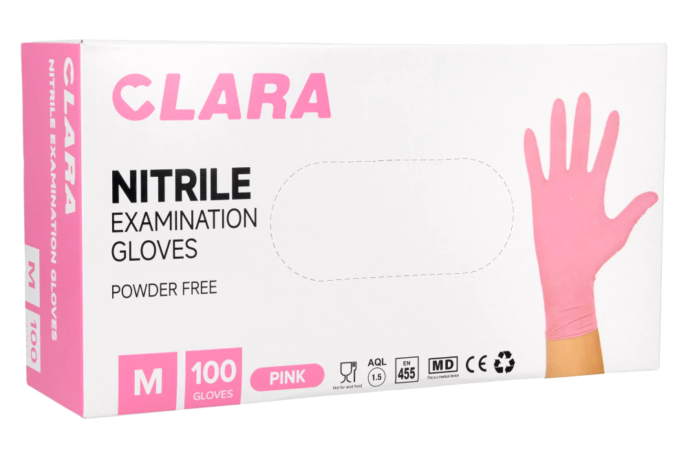 Rękawiczki nitrylowe różowe 100 szt. Clara