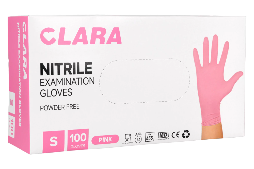 Rękawiczki nitrylowe bezpudrowe różowe S – CLARA (100 szt.)