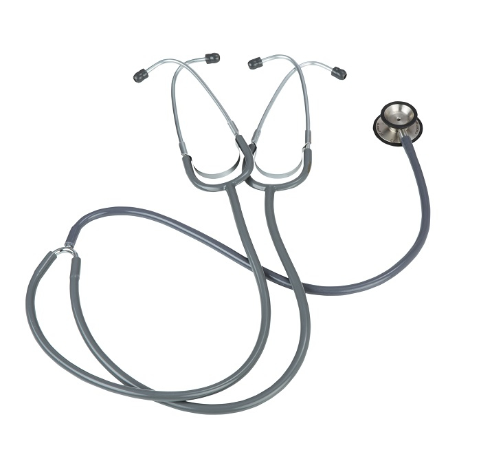 Stetoskop dydaktyczny duplex z dwustronną głowicą i dwiema lirami został zaprojektowany specjalnie do celów nauki. Nadaje się do badania wykonywanego przez dwie osoby. chromowana i platerowana lira ze zintegrowaną sprężyną, dwustronna głowica wykonana ze stali nierdzewnej, membrana o średnicy Ø 48 mm, z płaską przylegającą do ciała powierzchnią, lejek, Ø 36 mm, długość całkowita: 115 cm, para dodatkowych oliwek i zapasowa membrana w komplecie