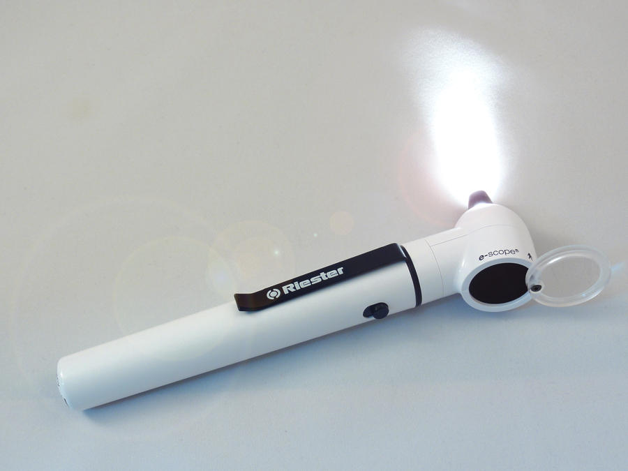 Kieszonkowe otoskopy e-scope firmy Riester – Jasne światło.