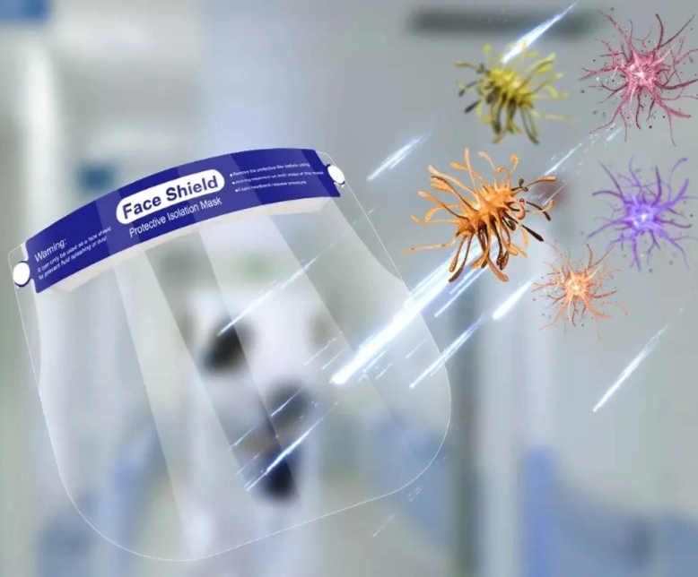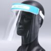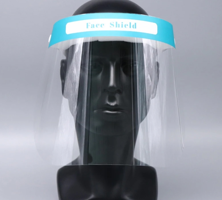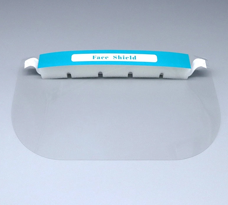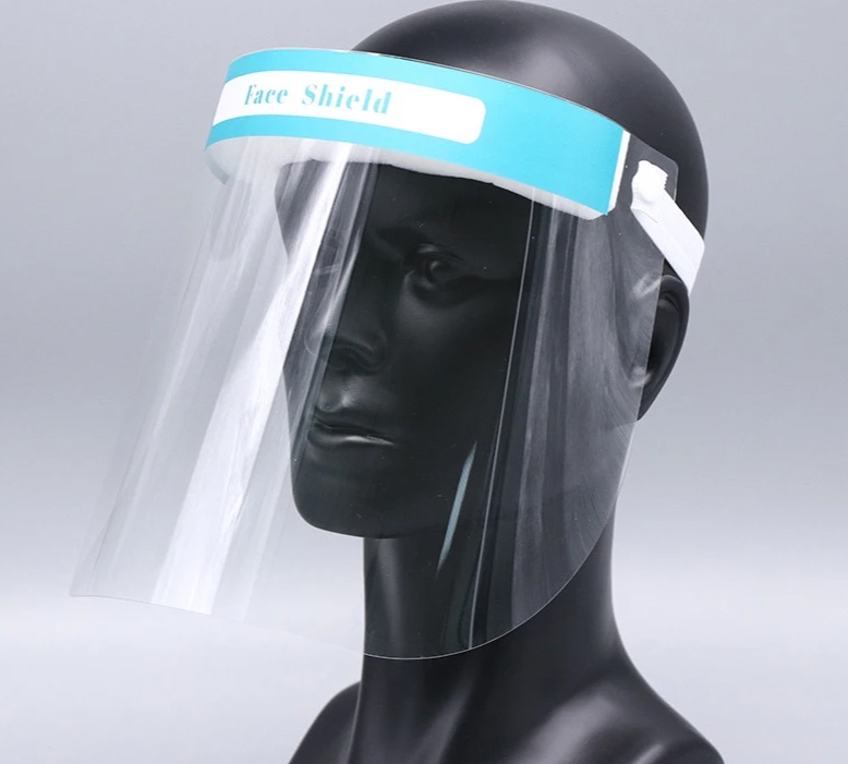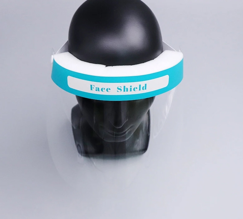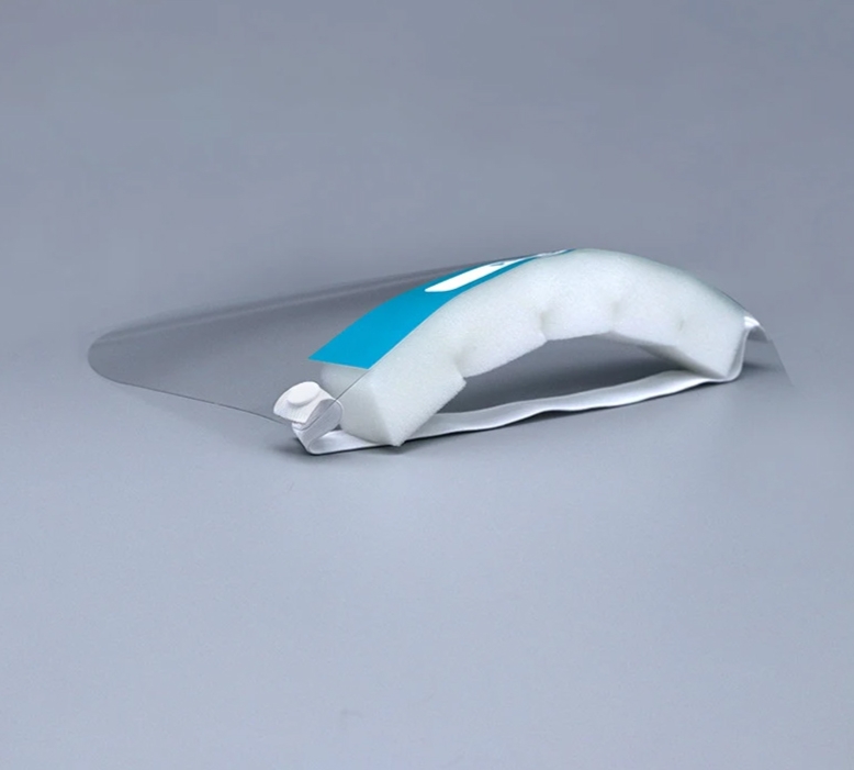 Przezroczysta osłona twarzy z komfortową gąbką i gumką ściągającą.
