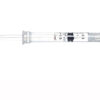 - Przesuń bezpieczny kołnierz do góry, chowając igłę, aż do momentu, w którym poczujesz opór i usłyszysz kliknięcie. Gwarantuje to, że kołnierz jest w odpowiednim miejscu do bezpiecznego transportu strzykawki do pacjenta.