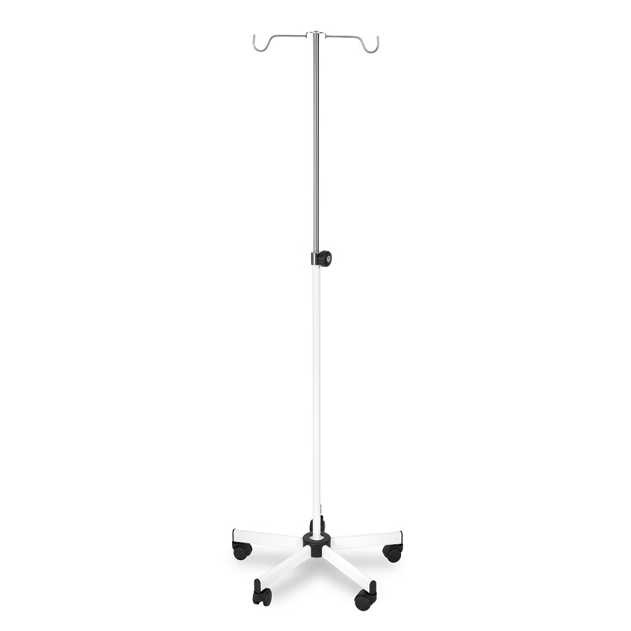 Stojak dla kroplówek (płynów infuzyjnych) Przemieszczanie statywu umożliwia pięcionóg z kółkami jezdnymi, natomiast regulacja wysokości wieszaka możłiwa jest dzięi zastosowaniu układu zaciskowego. Produkt wykonany jest ze stali nierdzewnej, pokryty jest farbą proszkową. Statyw na kroplówki w wersji SK-2 wyposażony jest w dwa wieszaki na pojemnik z płynami infuzyjnymi. Wysokość: min. 1100 – max. 2000 mmŚrednica podstawy: 680 mm