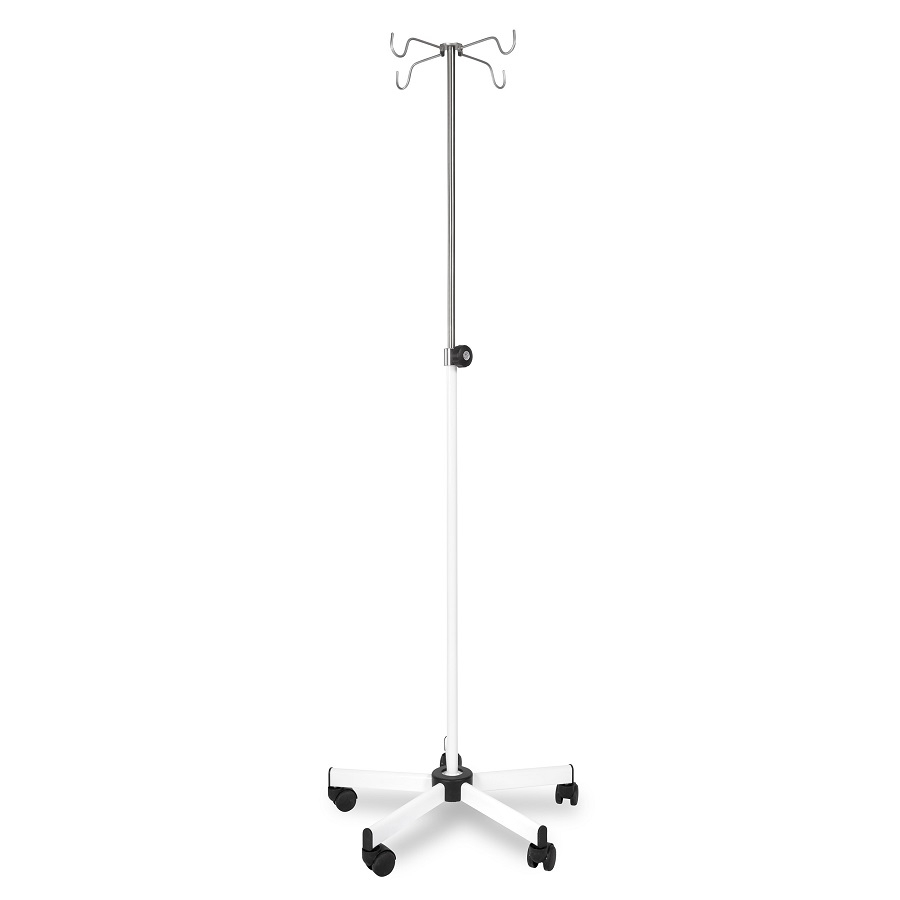 Produkt został wykonany ze stali nierdzewnej. Stojak dla kroplówek pokryty jest farbą proszkową.