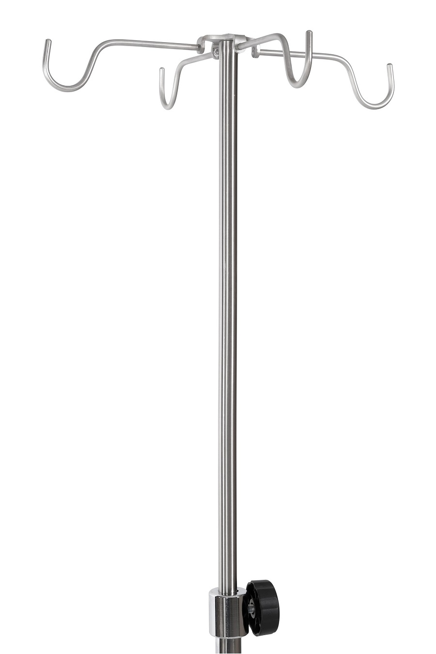Stojak dla kroplówek w wersji SK-4 wyposażony jest w cztery wieszaki do pojemników z płynami infuzyjnymi.