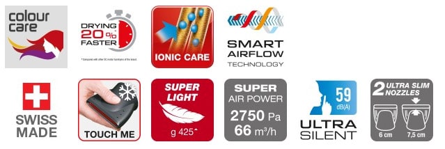 – SMART AIR FLOW – technologia optymalnego przepływu powietrza przez suszarkę daje bardzo wysokie osiągi