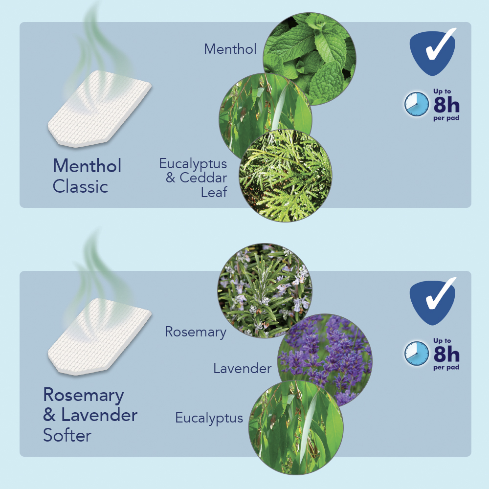 Wkładki zapachowe Vicks VapoPads VBR7EV1 o delikatnym zapachu rozmarynu i lawendy.