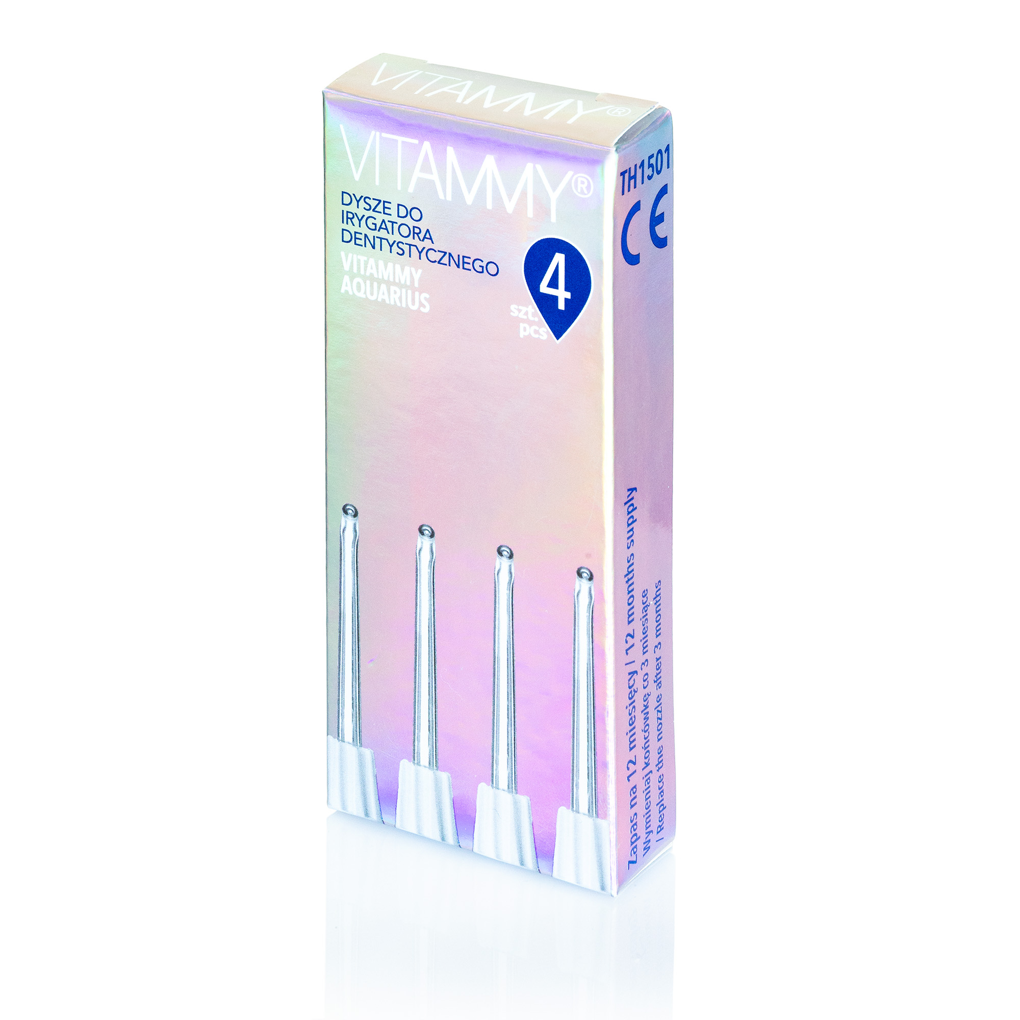 Zapasowe końcówki do irygatora Vitammy AQUARIUS – 4 sztuki w opakowaniu.