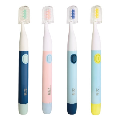 Dostępna jest w czterech wersjach kolorystycznych: – niebieskiej, – granatowej, – turkusowej, – różowej. Szczoteczka soniczna BUZZ to uniwersalny rozmiar główki, łatwa obsługa i dwa programy mycia. Wszystko zaprojektowane z myślą o dzieciach w wieku przedszkolnym i szkolnym. Posiada przyjemną w dotyku, matową rączkę, która zapobiega wysuwaniu się szczoteczki z dłoni.