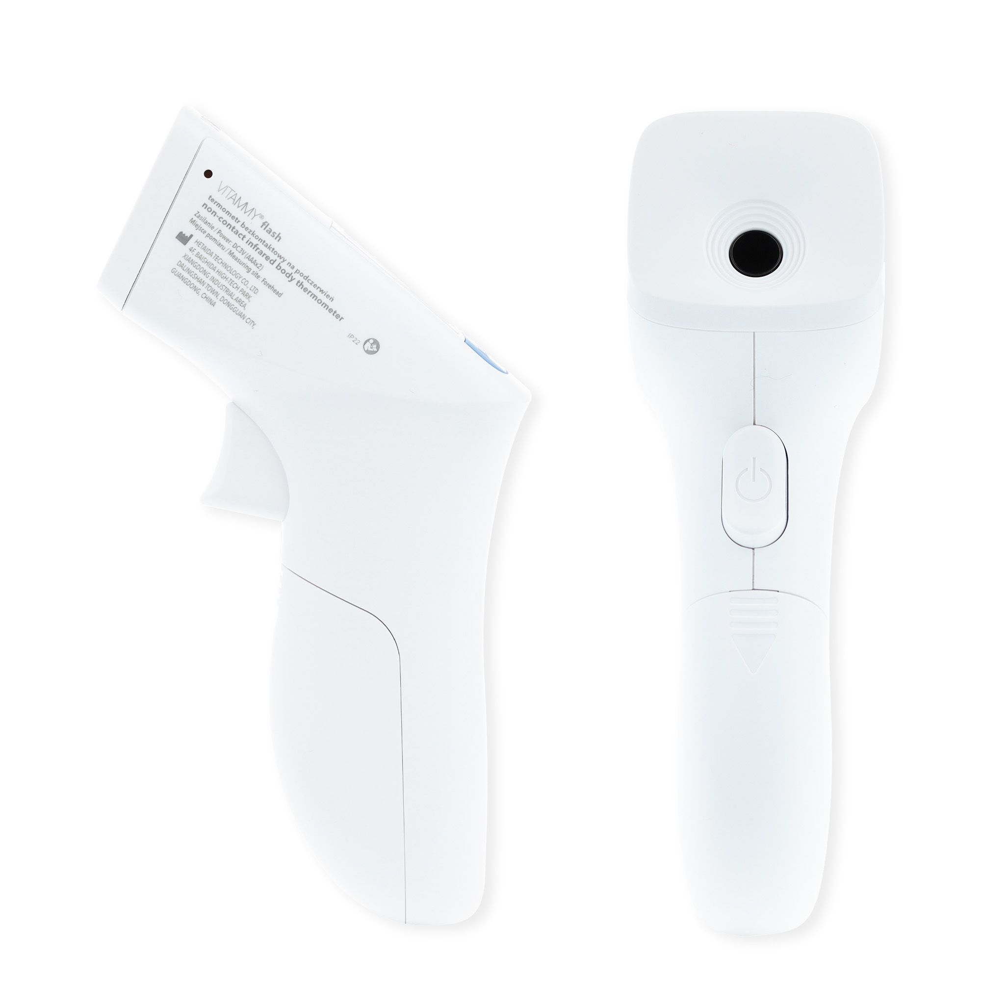Poręczna budowa Vitammy Flash sprawia, że wygodnie układa się w dłoni. Spust pozwala na szybkie wykonanie pomiaru i łatwe ustawienie do czoła pacjenta. Lekka, ale solidna obudowa waży jedynie 80g.