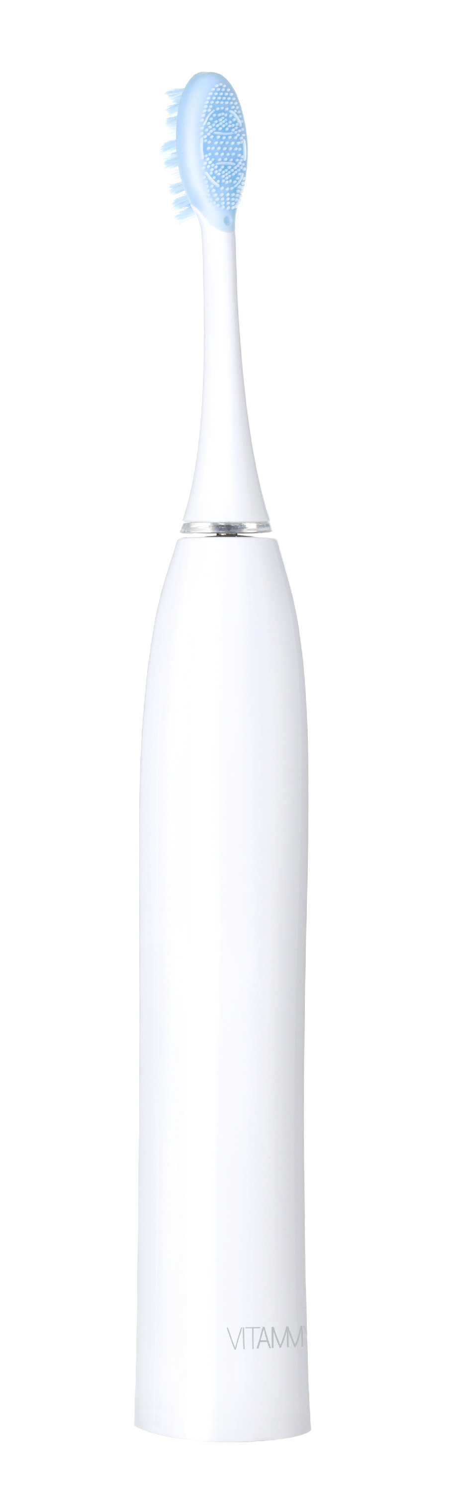 Główka szczoteczki VITAMMY Pearl+ została zaprojektowana z myślą o maksymalnym komforcie użytkowania. Jej duży rozmiar i długie włókna pozwalają na dokładne czyszczenie zębów, podczas gdy miękki element masujący delikatnie stymuluje dziąsła i skutecznie oczyszcza język, zapewniając kompleksową pielęgnację jamy ustnej i długotrwałą świeżość. Dodatkowo silikonowy kołnierz pełni funkcję ochronną, eliminując nieprzyjemne uderzenia główki o zęby.