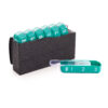 Wszystkie kasetki mieszczą się w eleganckim, skórzano-podobnym etui o nowoczesnym designie. Etui nie tylko chroni kasetki, ale także sprawia, że całość prezentuje się estetycznie i dyskretnie – idealna do torebki, walizki czy szuflady. Organizer świetnie sprawdzi się zarówno w domu, jak i w podróży