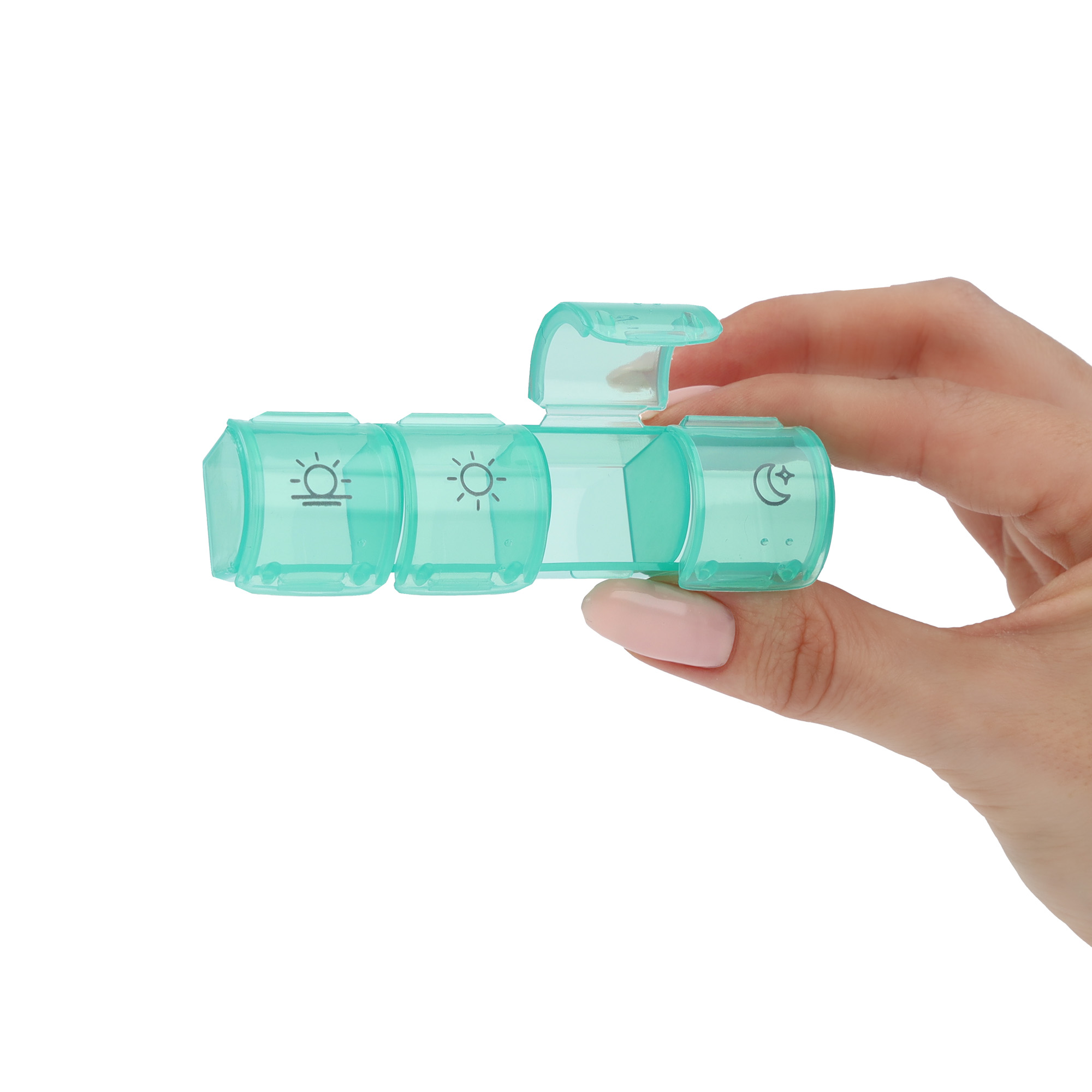 Praktyczna, kolorowa i czytelna organizacja leków na cały tydzień! Vitammy Pilla Slide to zestaw 7 osobnych kasetek – po jednej na każdy dzień tygodnia. Każda z nich została podzielona na cztery oddzielne przegrody, odpowiadające porom dnia: rano, południe, wieczór i noc. Przegrody są osobno otwierane, co ułatwia dostęp i minimalizuje ryzyko pomyłki.