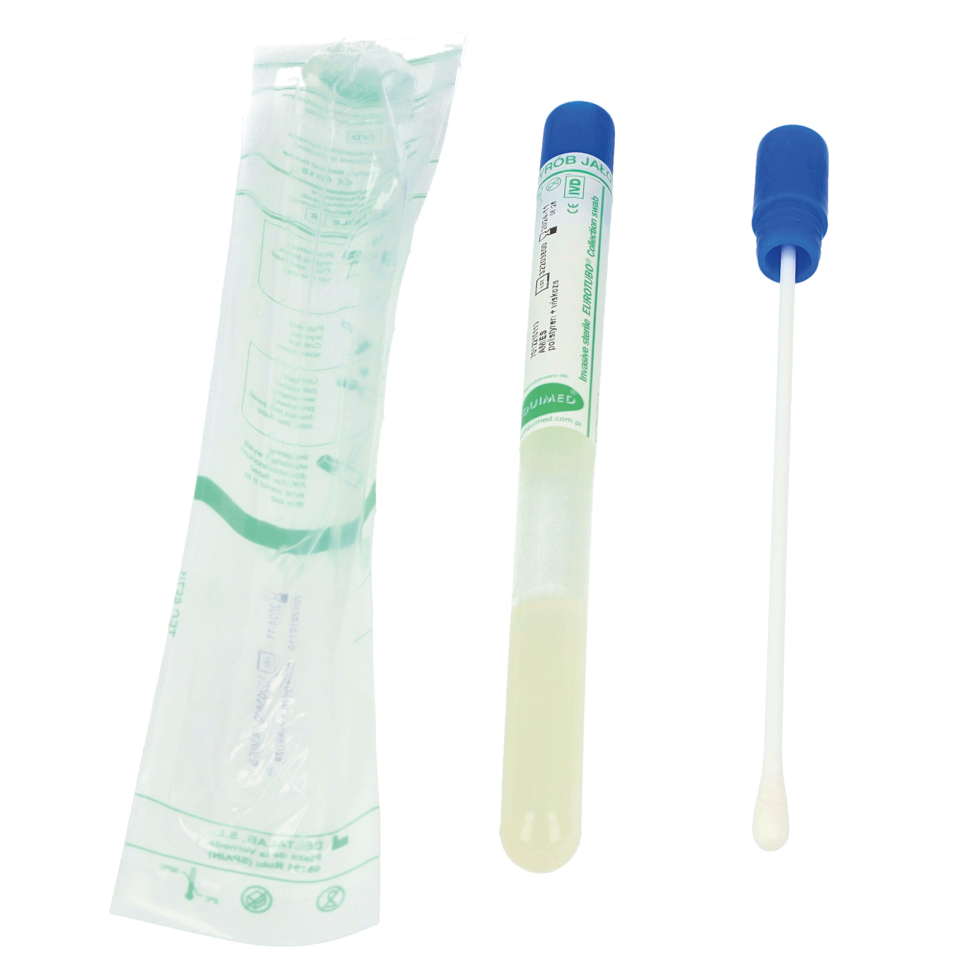 Pałeczki do wymazów jałowe z podłożem transportowym AMIES pakowane są w opakowanie typu blister wraz z probówką z podłożem, zamkniętą korkiem w kolorze niebieskim (w przypadku dodatku węgla – czarnym) i uszczelnioną etykietą, pełniącą – poza oznaczeniem próbki – rolę dodatkowego uszczelnienia korka oraz zabezpieczenia wyrobu przed przypadkowym otwarciem i utratą sterylności.